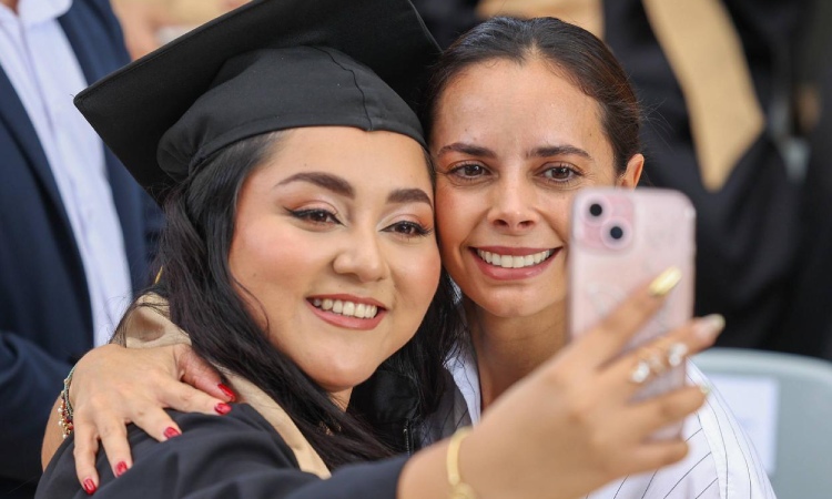 Cancún, Q. R., a 07 de noviembre de 2025.- La Presidenta Municipal, Ana Paty Peralta, junto a la gobernadora, Mara Lezama, convivió con los 224 alumnos egresados de tres licenciaturas, una ingeniería y una especialidad de maestría de la Universidad Tecnológica de Cancún (UT), de la generación 2023-2025, a quienes exhortó a seguir adelante para desempeñarse como profesionales en sus áreas para consolidar un mejor Cancún.