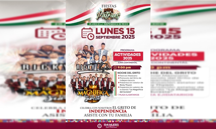 La noche incluirá presentaciones estelares de Ricky Thyam y la Banda «La Magnífica del Sureste», para brindar a los habitantes la oportunidad de participar en las festividades, en un ambiente familiar y seguro.