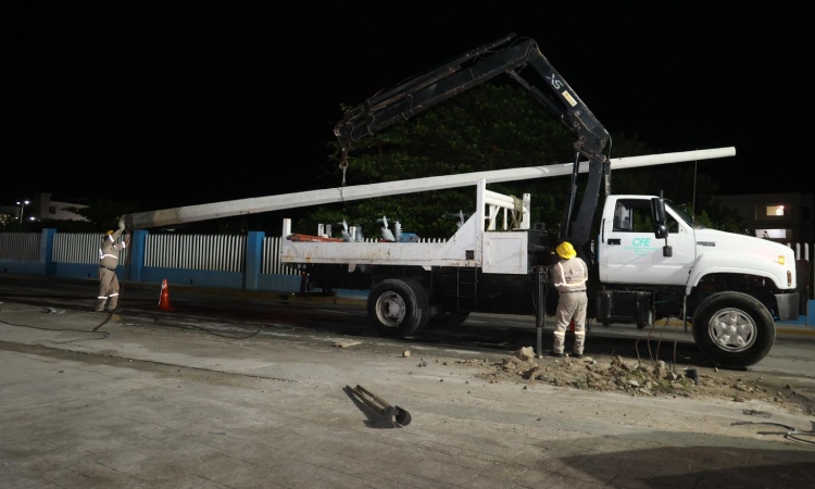 Los trabajos del retiro de postes de alumbrado público iniciaron anoche y se extendieron hasta altas horas de la madrugada, esto para no afectar la movilidad cotidiana ni la actividad turística.