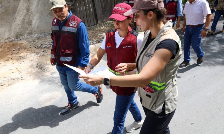 Acompañada por la secretaria municipal de Obras Públicas y Servicios, Samantha Hernández Cardeña; y del el director de Pozos y Limpieza de Playas, Arturo Javier Quintero Díaz, la Alcaldesa dijo sentirse emocionada por las obras en la que se trabaja todos los días, y que representan la justicia social para las familias cancunenses que durante años esperaron esa regularización de sus tierras.