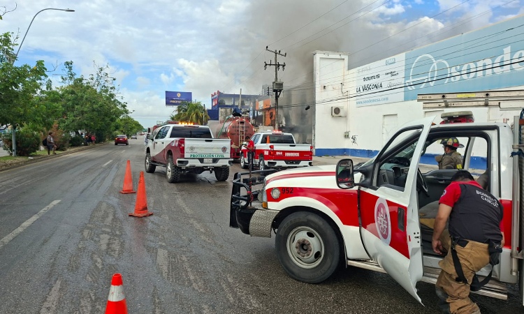 Cancún, Q. R., a 2 de octubre de 2025.- Elementos del Heroico Cuerpo de Bomberos de Cancún lograron controlar un incendio registrado en un local abandonado en la Supermanzana 69, sobre la Av. López Portillo.