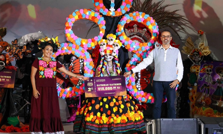 La noche siguió en el escenario principal, donde la música encendió la piel de los asistentes con la voz de Keyra Juárez; la escuela de danza «Talulah»; el grupo «Yaaxche» del Instituto Tecnológico de Cancún; el Ballet Folclórico «Anirak»; la Compañía Municipal de Coro; el grupo «Sabor con 6»; así como la pasarela del concurso de catrinas y catrines.