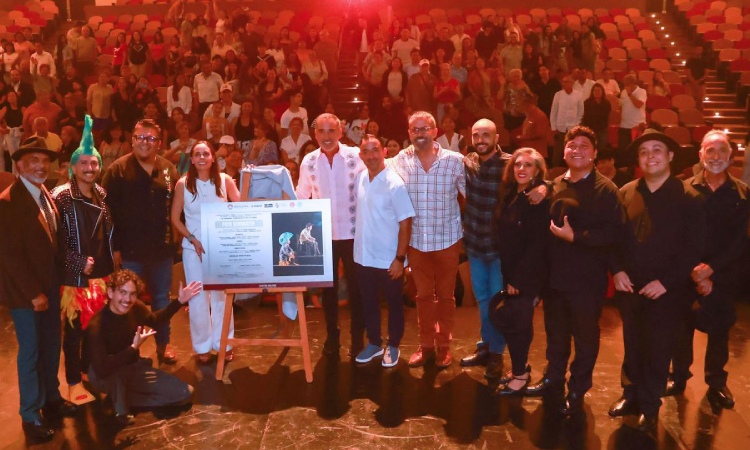 Al término de esta puesta en escena, entre aplausos y una atmósfera de celebración, Ana Paty Peralta, acompañada de Carlos López Jiménez y del talentoso cantautor quintanarroense Omar Terrazaz, develó la placa conmemorativa, símbolo de conclusión de esta memorable jornada teatral.