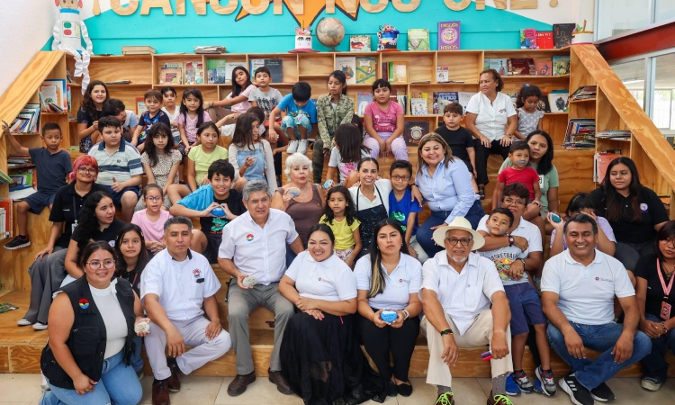 En sus recorridos de trabajo por la ciudad, la Primera Autoridad Municipal convivió con niñas y niños de las bibliotecas públicas “Dr. Enrique Barocio Barrios”, en la Supermanzana 1, y “Rosendo Leal Sánchez”, en la Supermanzana 95, beneficiados con el curso “Mis vacaciones en la biblioteca”, a cargo de la Secretaría del Bienestar.
