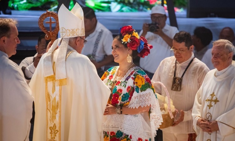 Antes del acto de clausura, Estefanía Mercado acompañó a la comunidad católica durante la misa oficiada por el Obispo de la Prelatura Cancún-Chetumal, Monseñor Pedro Pablo Elizondo, quien llamó a preservar con unidad las tradiciones y valores que dan identidad al pueblo. “La Virgen del Carmen encarna los valores que sostienen la vida familiar y comunitaria”, expresó.
