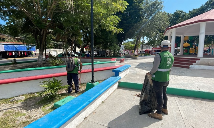 Entre los parques atendidos se encuentran Villas la Playa, Villas I, Jaguares y Pescadito, donde se realizaron trabajos de barrido, rastrillado, poda de árboles y palmeras, limpieza de jardineras, retiro de residuos inorgánicos y retoque de pintura en bancas y jardineras. Como resultado, se retiraron más de 35 metros cúbicos de residuos vegetales y basura.