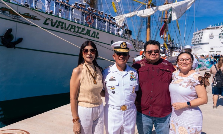 Con un ambiente festivo en el malecón, entre música, banderas ondeantes y familias reunidas, la comunidad cozumeleña dio la bienvenida a la tripulación del Cuauhtémoc, que arriba a este puerto como su primer destino tras reanudar su travesía internacional.
