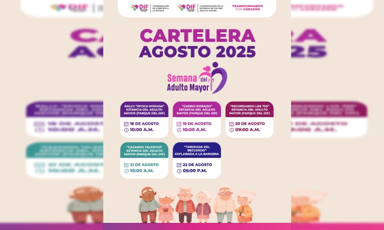Esta jornada festiva tiene como objetivo reconocer la valiosa contribución de las personas adultas mayores a la comunidad, así como promover su inclusión activa a través de espacios de convivencia, expresión y recreación. Las actividades serán organizadas por el Sistema DIF Cozumel, a través de la Coordinación de Atención a la Familia y la Coordinación de la Estancia de Día del Adulto Mayor.