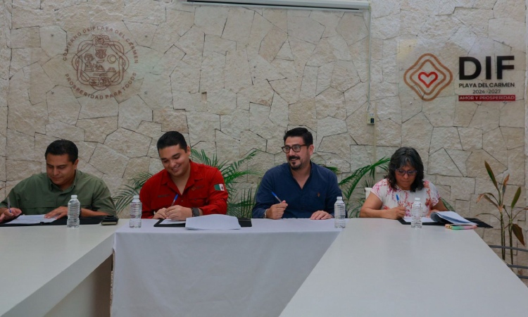 La firma del convenio se llevó a cabo en la Sala de Juntas del DIF Playa del Carmen, con la participación de Eduardo Asencio y Miguel Castro, oficial mayor del organismo; así como del rector Jesús de Miguel Papacostas y la directora del plantel, Ileana Granados, en representación de la Universidad Aztlán.