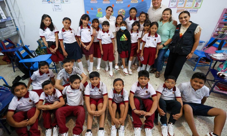 Cancún, Q. R., a 14 de octubre de 2025.- “Llevamos ya más de 28 mil pares de tenis entregados, que son para todas y todos los estudiantes de Cancún con nuestros Pasos para la Transformación”, dijo la Presidenta Municipal, Ana Paty Peralta, durante la entrega de tenis que se llevó a cabo en las escuelas primarias “Cuitláhuac” y “Cecilio Chi”, con el objetivo de llegar a más de 119 mil alumnos.