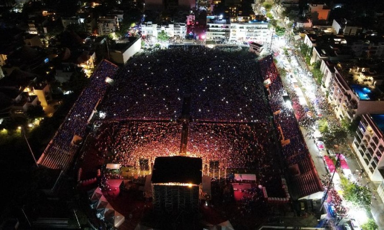 Playa del Carmen, Quintana Roo, 15 de septiembre de 2025.– En un hecho sin precedente en la historia de Playa del Carmen, la presidenta municipal Estefanía Mercado encabezó esta noche la ceremonia conmemorativa por el 215 aniversario del Grito de Independencia ante más de 50 mil personas reunidas en el estadio Mario Villanueva y sus alrededores, en una fiesta mexicana que estuvo amenizada por Grupo Frontera.