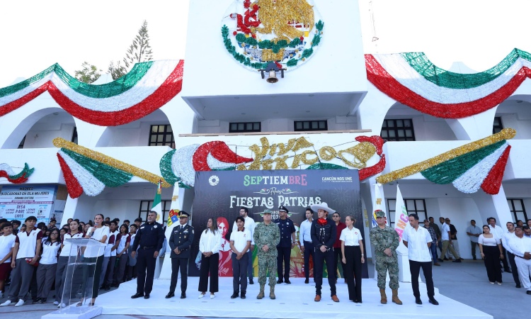 Con una ceremonia muy emotiva iniciando con el izamiento y honores a la bandera, así como la entonación de los himnos Nacional Mexicano y de Quintana Roo, acompañados por la Orquesta del Ayuntamiento de Benito Juárez, los servidores públicos del gobierno municipal e invitados disfrutaron de una exhibición de Kevin Gael Escalante Padilla, Floreador de Reata del equipo Hacienda Santa Isabel y de la declamación del alumno del CBTIS 272 Axel Miguel Hernández de la poesía alusiva al festejo patrio «México tierra de pirámides».