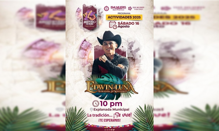 Recordó que Edwin Luna y La Tracalosa de Monterrey cuentan con un amplio repertorio que incluye éxitos como “Broche de Oro”, “Borracho de Amor” y “Si ya no me quieres”.