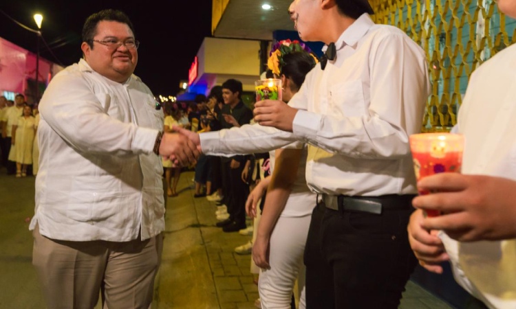 El evento, que tuvo como escenario principal el parque Benito Juárez, reunió a cientos de familias cozumeleñas y visitantes que disfrutaron de la procesión de ánimas, el video mapping “Almas de la Isla” y una noche llena de color, música y tradición.