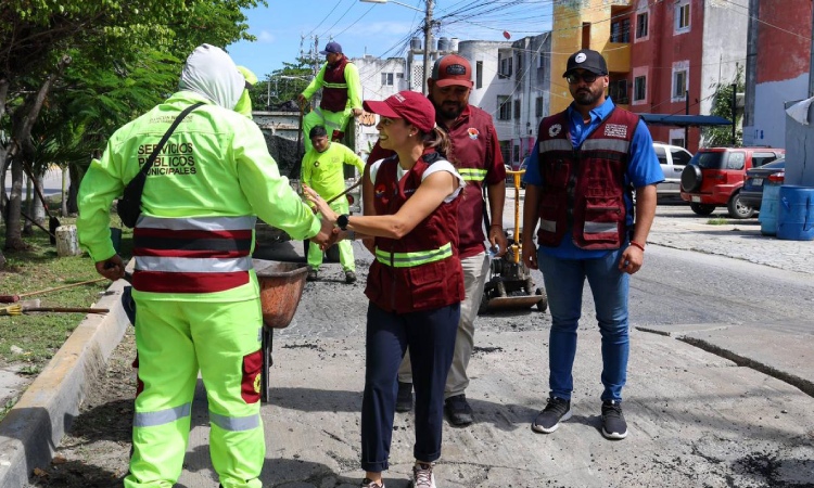 Cancún, Q. R., a 13 de octubre de 2025.- La Presidenta Municipal, Ana Paty Peralta, realizó un recorrido de supervisión al mantenimiento vial a la Avenida 20 de Noviembre, en las inmediaciones de la Supermanzana 77, sobre la, consistentes en bacheo de la vialidad para mejorar el tráfico vehicular e incrementar la seguridad de los ciudadanos, gracias a un proceso eficiente y duradero.