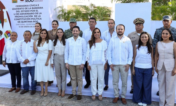 Chetumal, Q. R., a 12 de enero de 2026.- En el marco del 51 aniversario de la Promulgación de la Constitución Política del Estado Libre y Soberano de Quintana Roo, encabezado por la Gobernadora, Mara Lezama; la Presidenta Municipal de Benito Juárez, Ana Paty Peralta, reconoció que es un día importante para el Estado, al tener grandes reformas que ponen como prioridad al pueblo.