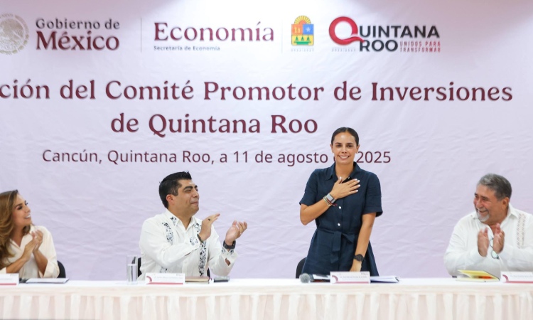 Cancún, Q. R., a 11 de agosto de 2025.- La Presidenta Municipal, Ana Paty Peralta, atestiguó la instalación del Comité Promotor de Inversiones de Quintana Roo, encabezado por la gobernadora Mara Lezama, en suma al “Plan México” de la autoridad federal, con el propósito de establecer la coordinación entre los tres órdenes de gobierno para promover la atracción de inversión productiva en sectores estratégicos para el desarrollo económico sostenible.
