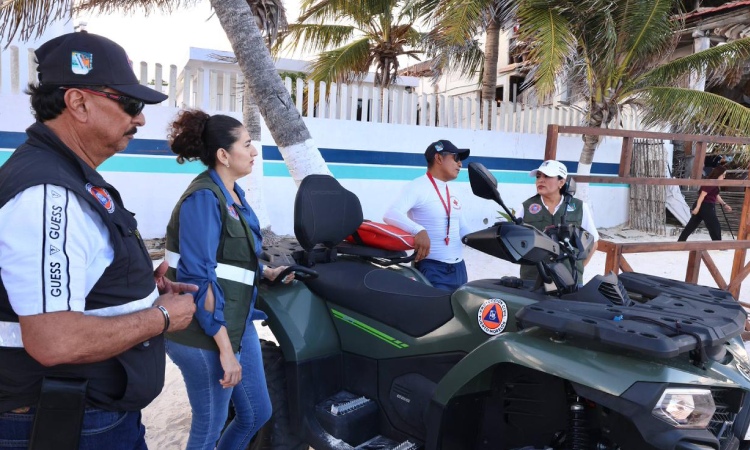 La coordinadora de Protección Civil Irma Ávila Méndez junto con el director Antonio Domínguez Olán, destacaron la entrega reciente de herramientas especializadas para rescates, botiquines de primeros auxilios, kayaks y dos cuatrimotos que permiten a los rescatistas desplazarse con mayor rapidez a lo largo de la franja costera.