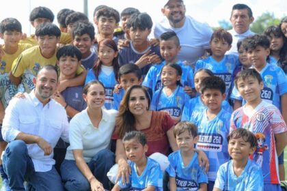 Ana Paty Peralta y Mara Lezama renuevan cancha de pasto sintético en la SM 258