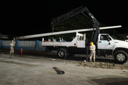 Avanza el retiro de postes en la avenida Rueda Medina de Isla Mujeres; 26 desmontados en el segundo día de trabajos