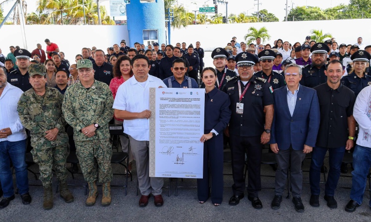 De igual forma, el secretario ejecutivo del Sistema Estatal de Seguridad Ciudadana, Adrián Martínez Ortega, en representación de la Gobernadora Mara Lezama, expresó que se seguirá trabajando de manera institucional con los 11 municipios para la dignificación policial de todos los cuerpos de seguridad.